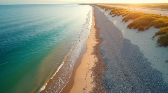 Ces plages présentent généralement une pente douce, ce qui crée des zones de baignade peu profondes idéales pour les familles. L’eau y est souvent plus chaude car le sable emmagasine la chaleur du soleil. En revanche, elles nécessitent quelques précautions : le sable s’infiltre partout, des serviettes aux appareils électroniques, et peut devenir brûlant en pleine journée estivale.